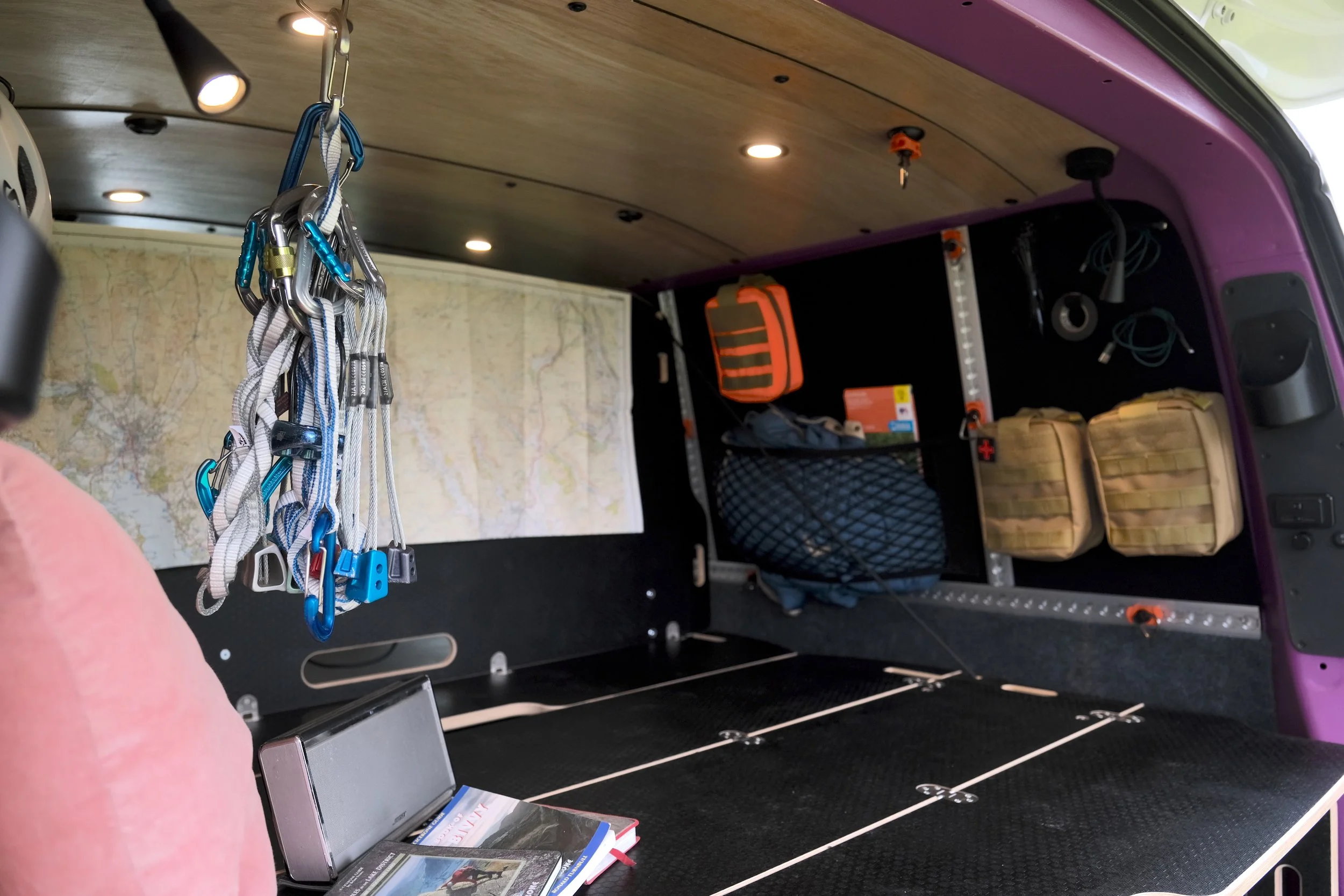With the bench seat in the travelling position, extra spurious storage space is created between the seat backs and the Ovano Switch, ideal for larger/custom storage requirements.